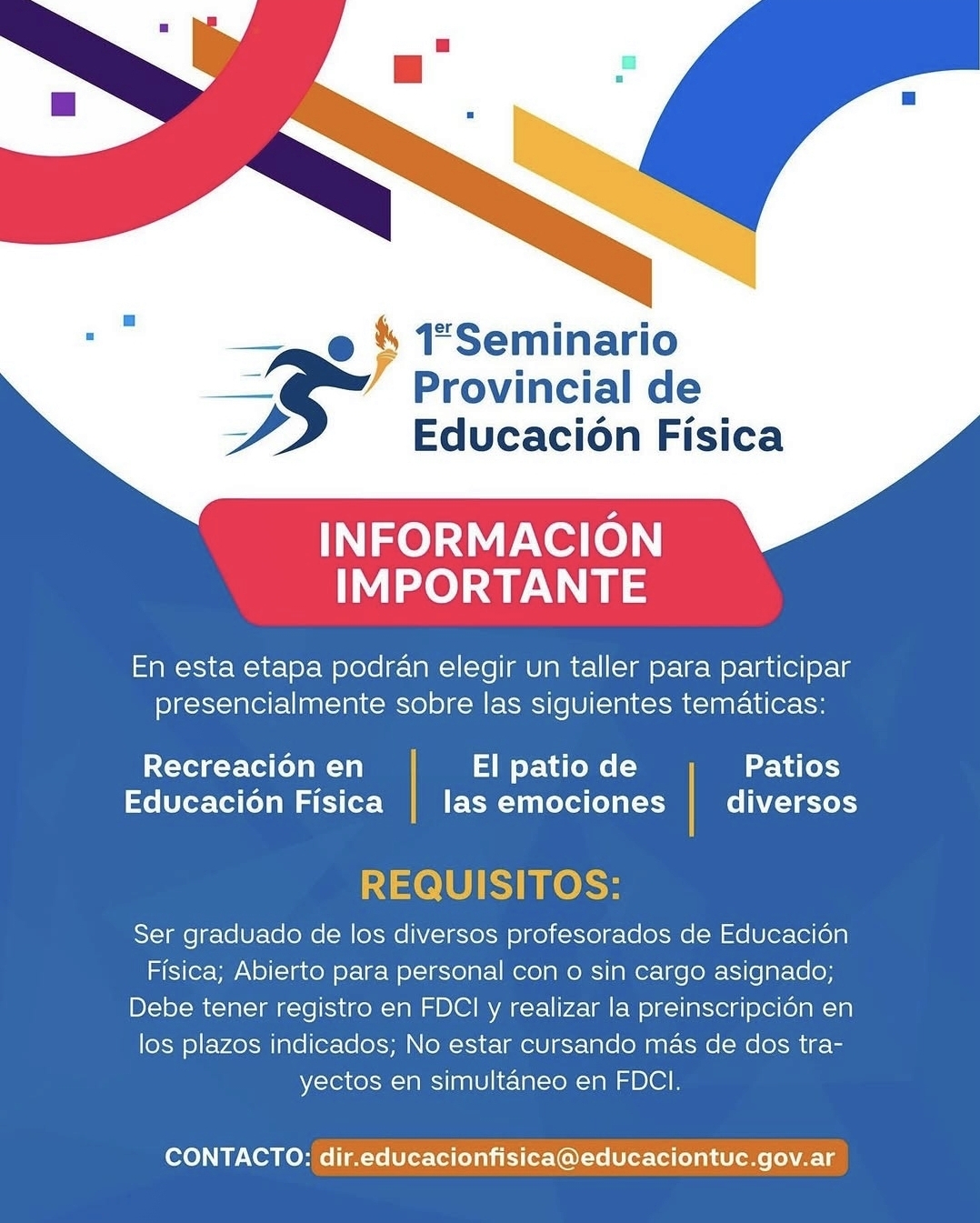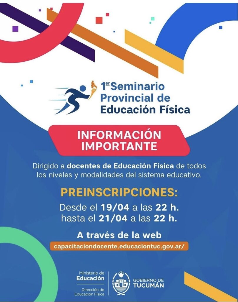 El Ministerio de Educación de Tucumán informó la apertura de preinscripciones para el 1º Seminario Provincial de Educación Física, destinado a docentes de todos los niveles y modalidades del sistema educativo.