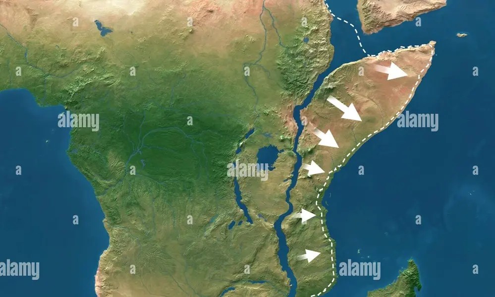 La separación de África surge en el Sistema de Rift de África Oriental, una enorme grieta de 2.000 millas de longitud que comenzó a formarse hace al menos 22 millones de años en la región de los Grandes Lagos. Esta área es el punto de encuentro de las placas tectónicas somalí y nubia, que se están separando gradualmente.