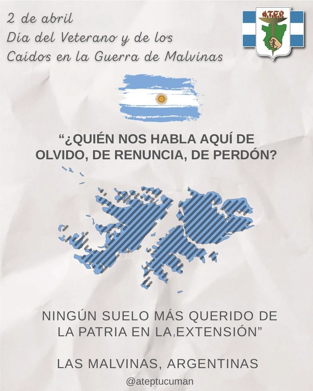 En el marco del 2 de abril, Día del Veterano y de los Caídos en la Guerra de Malvinas, la Agremiación de Trabajadores de la Educación de Tucumán (ATEP) rindió homenaje a los héroes argentinos que combatieron con valentía y a quienes dieron su vida por la patria.