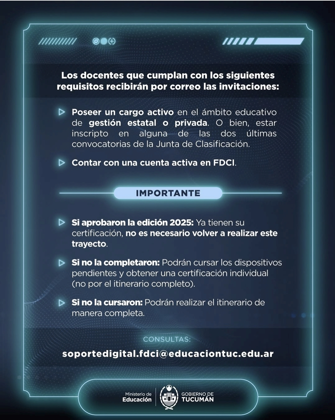 El Ministerio de Educación de la Provincia informó que dio inicio el envío de invitaciones, a través de correo electrónico, a docentes tucumanos para participar de una nueva edición del trayecto formativo en Inteligencia Artificial.