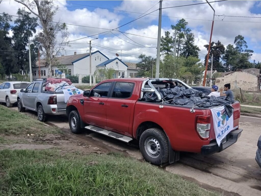 Durante la jornada, la comitiva concretó la entrega de diversas donaciones destinadas a docentes afiliados. Entre los elementos distribuidos se incluyeron bidones de agua, frazadas, colchas y sábanas, además de productos de higiene personal y artículos de limpieza para el hogar.