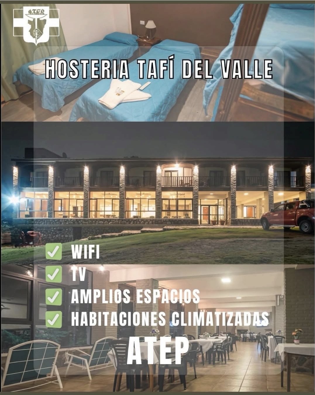 La Agremiación Tucumana de Educadores Provinciales (ATEP) difundió una propuesta turística destinada a sus afiliadas y afiliados, destacando la Hostería ATEP ubicada en Tafí del Valle como un espacio ideal para el descanso y la recreación en contacto con la naturaleza.