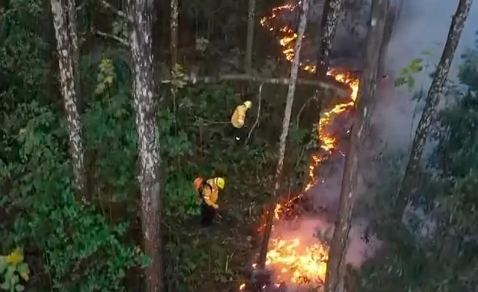Según la descripción, la vegetación alcanzada por el fuego contenía muchas resinas y hojas a nivel del suelo, que hicieron que las llamas sean importantes.