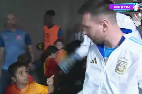 En un video que compartió la cuenta de X @M30Xtra se pudo ver el momento en el que uno de los niños le dijo algo al oído al campeón del mundo. Si bien no se pudo escuchar con claridad la conversación, sí se pudo determinar que habrían coordinado encontrarse cuando terminaran de cantar el himno nacional para que le regale algo que, al parecer, sería la campera blanca de la selección que lucía.