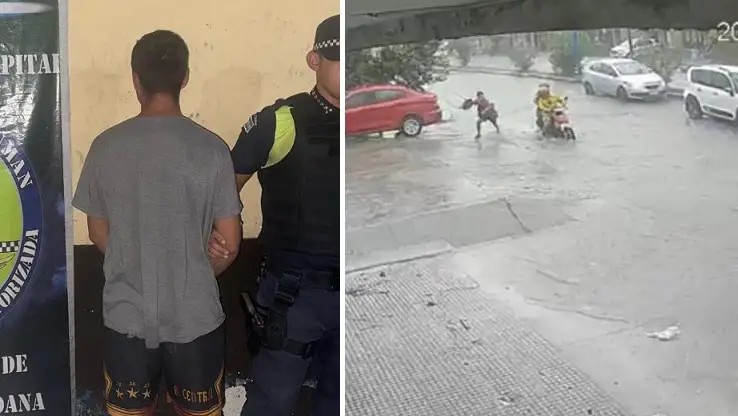 El pasado sábado, en medio de un fuerte temporal que dejó las calles completamente inundadas, un ladrón aprovechó la situación para robar las pertenencias del acompañante de un motociclista que había quedado atrapado en el agua.
