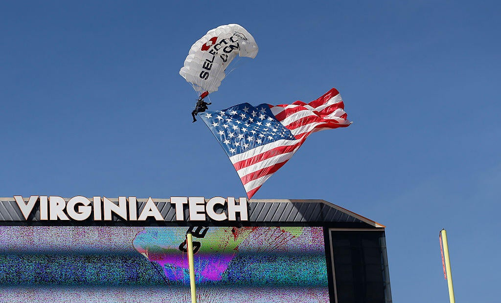 “Estamos agradecidos de anunciar que el paracaidista fue asegurado y actualmente se encuentra estable. Nuestro principal objetivo sigue siendo su bienestar”, informó Hokie Sports tras el accidente en la previa.