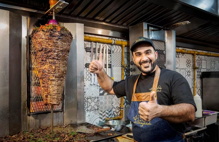 El hombre que escapó de la guerra de Irak escondido en un barco y ahora es furor en Córdoba con su shawarma