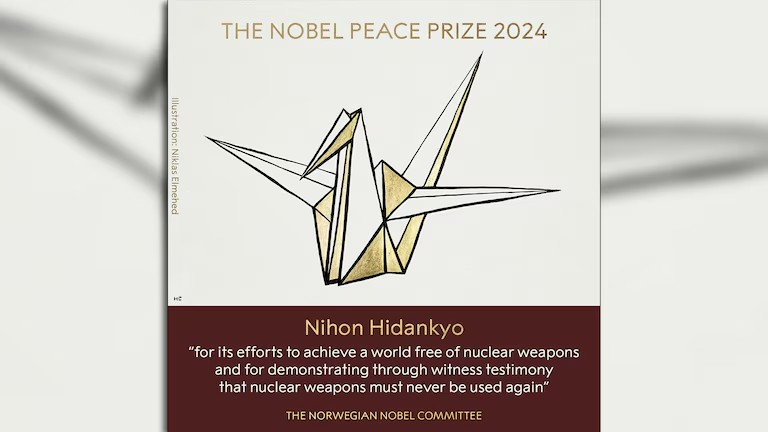 El Premio Nobel de la Paz 2024 fue otorgado a la organización Nihon Hidankyo. Este movimiento de base de supervivientes de las bombas atómicas de Hiroshima y Nagasaki, también conocido como Hibakusha, recibió el galardón por “sus esfuerzos para lograr un mundo libre de armas nucleares y por demostrar con sus testimonios que las armas nucleares no deben volver a emplearse nunca más”.