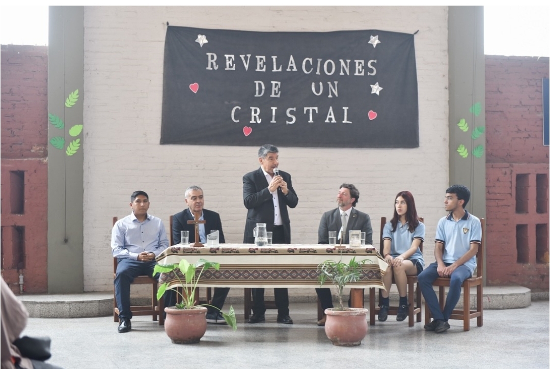 En el día de hoy, el vicegobernador MiguelAcevedo visitó el Instituto Santo Cristo, en Banda del Río Salí, para entregar un reconocimiento los estudiantes que participaron en la redacción del libro Revelaciones de un Cristal.