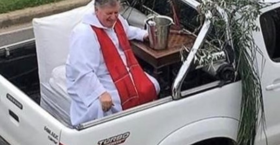 Rodríguez Alcobendas fue noticia en la pandemia por bendecir las casas del barrio Nordelta desde la caja de una 4X4