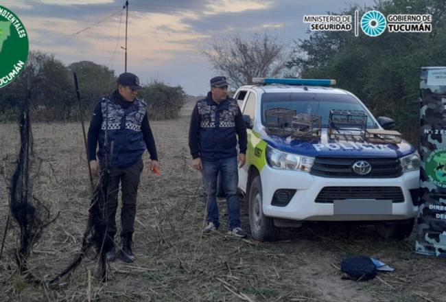 Durante la tarde de este viernes, personal de la División Delitos Rurales y Ambientales n° 2 Villa de Leales, detectó en un monte de la localidad de Los Lunarejos a un hombre con dos redes de niebla para capturar aves y con cinco ejemplares en jaulas.