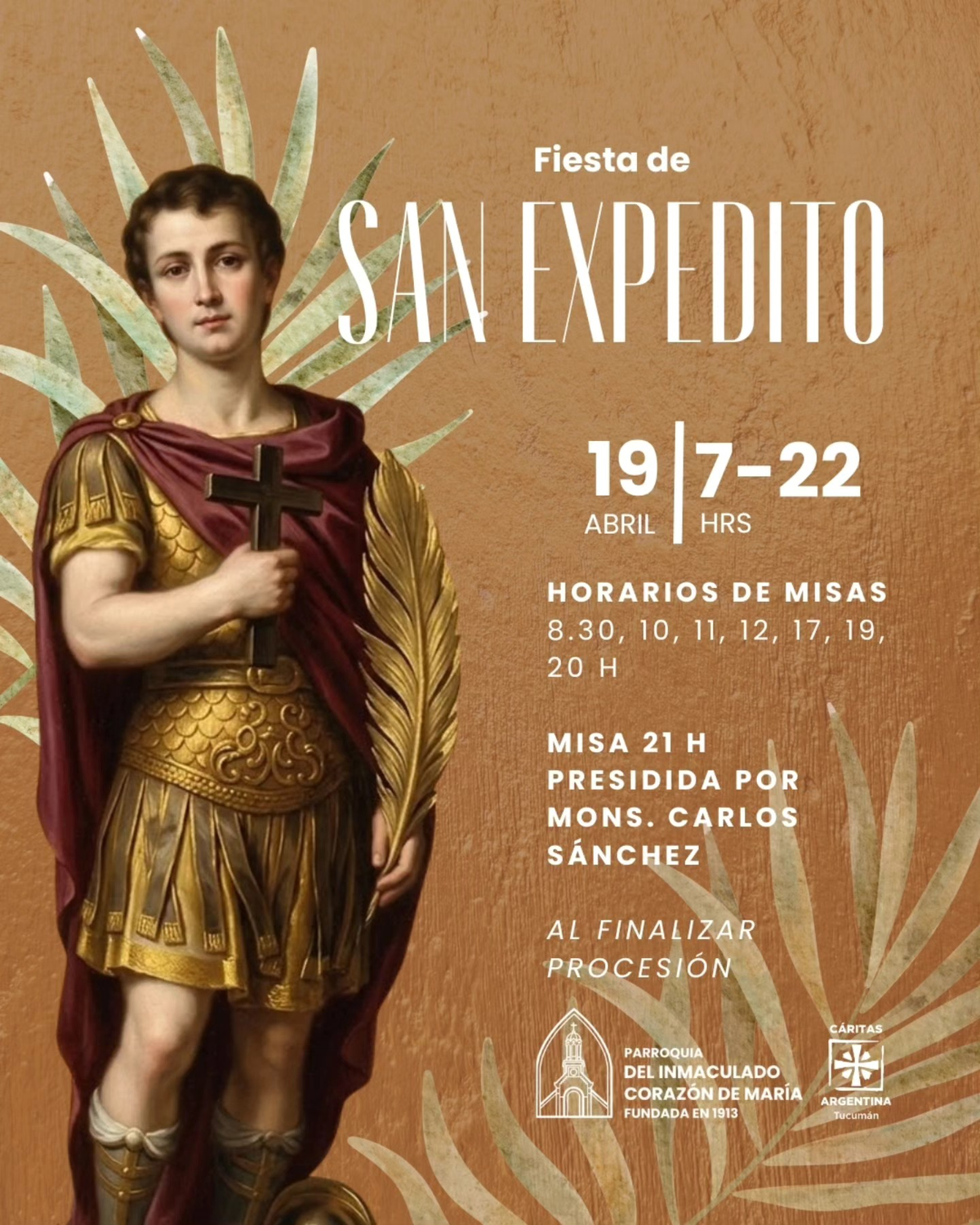 Fiesta de San Expedito: los horarios de las misas en Tucumán
