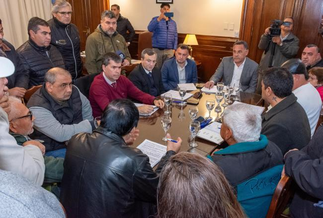 El ministro de Gobierno y Justicia, Regino Amado junto al secretario de Gobierno, Raúl Albarracín, llevaron adelante el diálogo en horas de la tarde de ayer con representantes de Unión de Gremios Estatales, Frente de Gremios Municipales y del Interior.