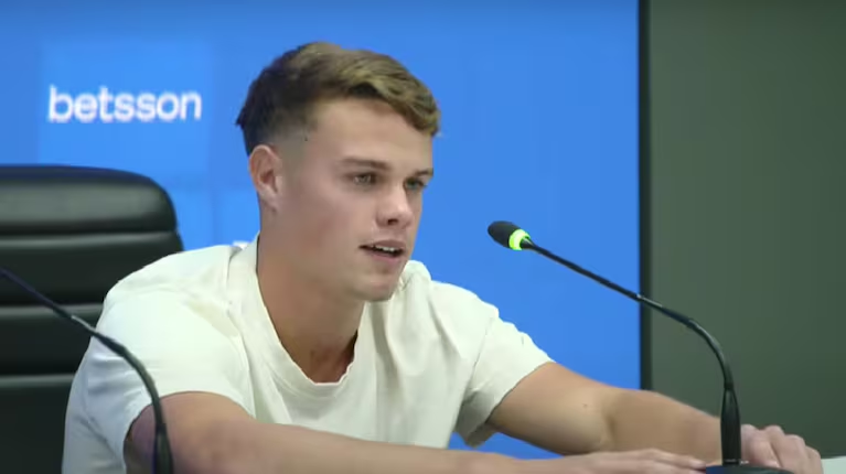 El mediocampista fue presentado junto a Agustín Martegani en una conferencia de prensa encabezada por el presidente Juan Román Riquelme.