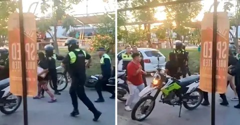Siempre según la versión aportada por vecinos, al lugar arribó luego la madre del motociclista acompañada por una menor, situación que incrementó la tensión y derivó en forcejeos y gritos. El momento de mayor conflicto quedó registrado en videos que comenzaron a circular en redes sociales y que muestran el enfrentamiento entre las partes.