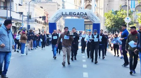 La carrera de mozos sorprendió a turistas en Plaza Independencia
