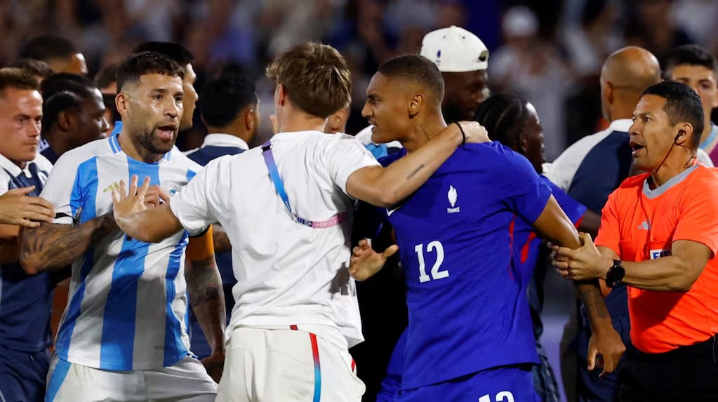 La Selección argentina perdió 1-0 ante Francia y quedó eliminada de los Juegos Olímpicos. Tras el pitazo final se desató el bochorno con los jugadores franceses que se burlaron de los argentinos en el terreno de juego y en las tribunas. Por eso, Nicolás Otamendi se mostró muy enojado tras el encuentro y apuntó a un rival en particular.