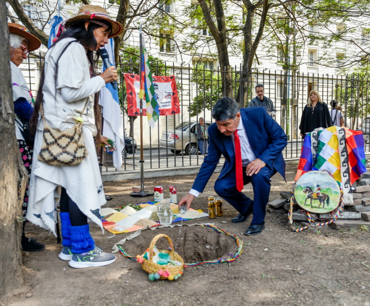 El vicegobernador Acevedo aceptó de inmediato la propuesta y se comprometió a construir un mástil junto a la apacheta, ubicada en los jardines legislativos, que se renovará anualmente durante el homenaje a la Pachamama.