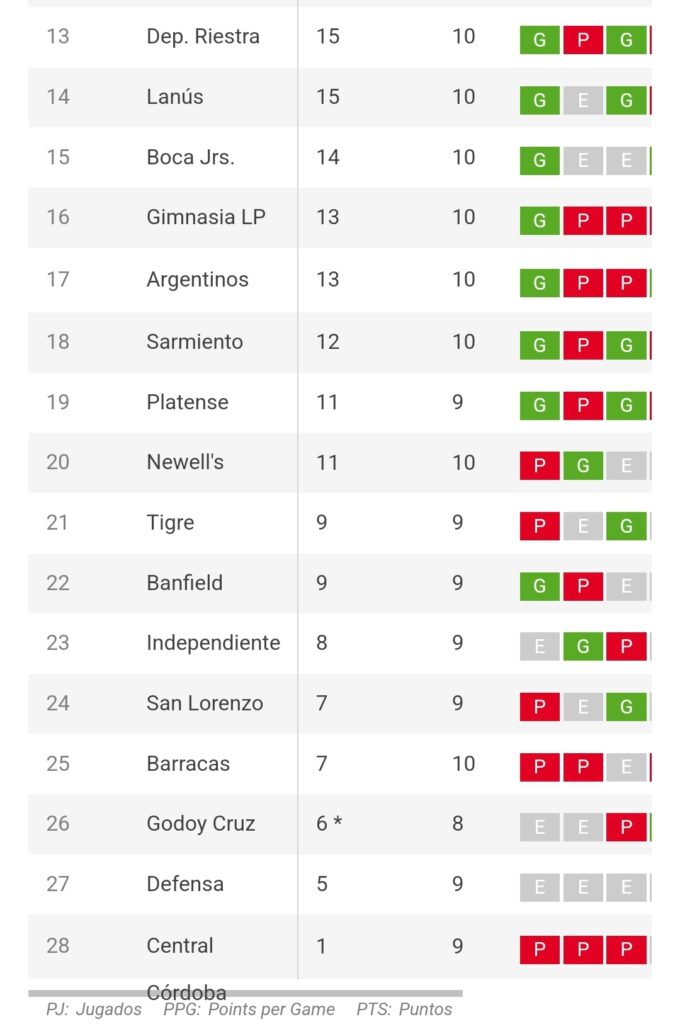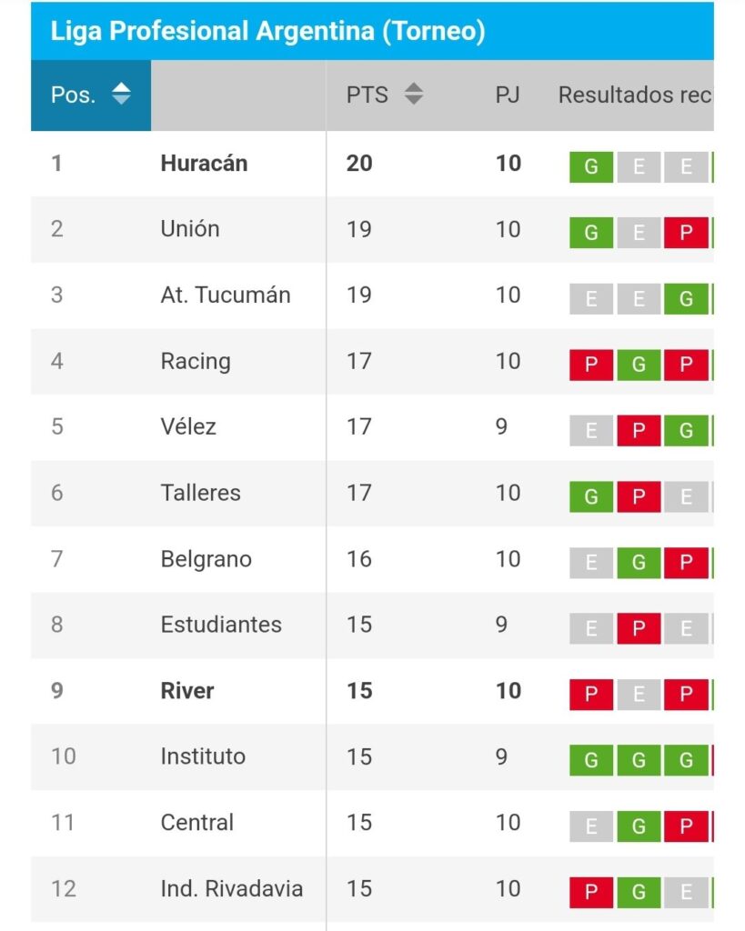 Actualmente, el Millonario se ubica en el noveno lugar de la Liga con 15 puntos, a cinco del Globo que comanda la tabla de posiciones en soledad, algo que podría modificarse este domingo si Vélez (17 unidades) supera a Banfield en el Florencio Sola desde las 17.30 y se trepa a lo más alto de la tabla.