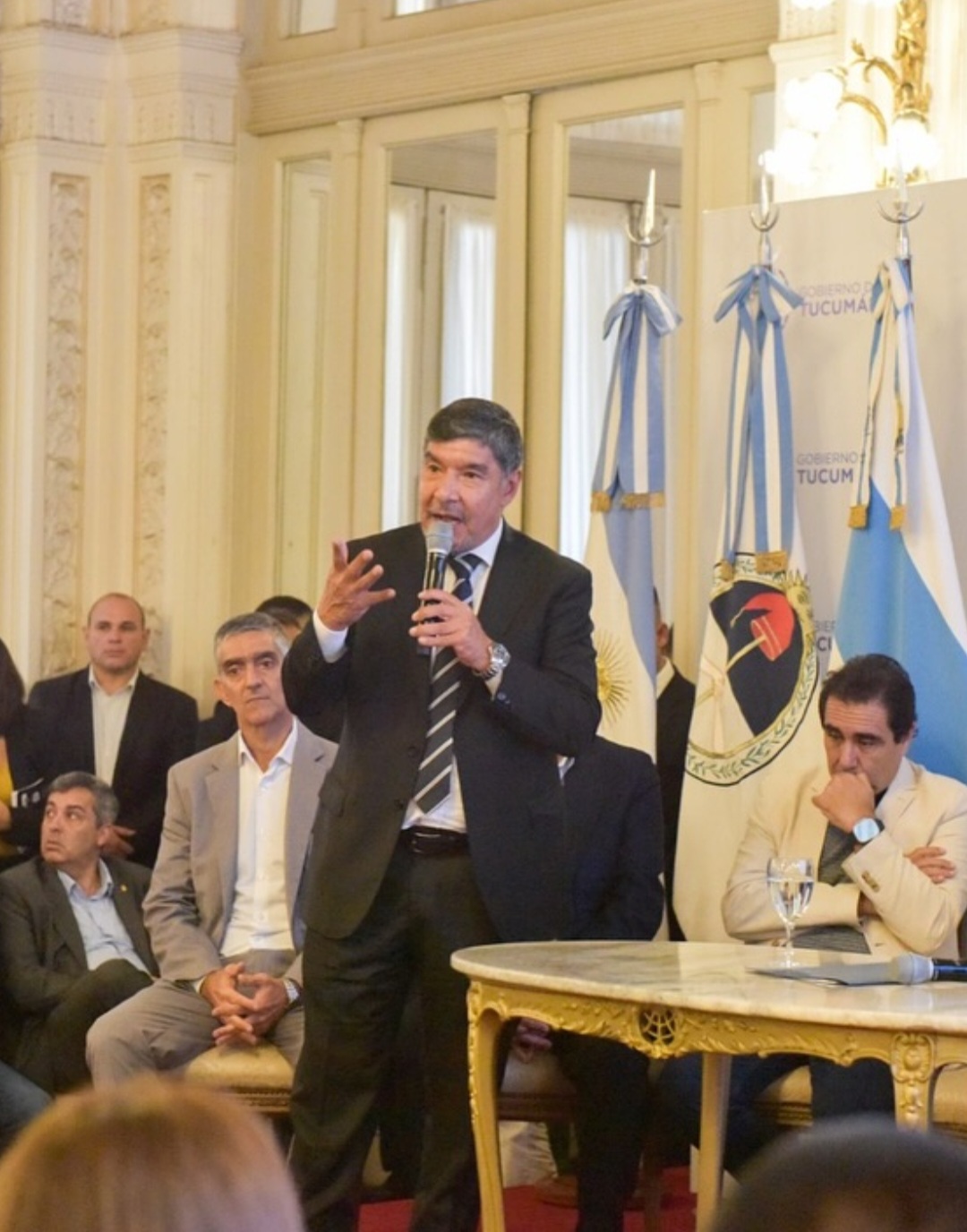 El vicegobernador, MiguelAcevedo, acompañó al al gobernador Osvaldo Jaldo durante el lanzamiento de la Tarjeta Alimentaria, en el salón blanco de Casa de Gobierno.