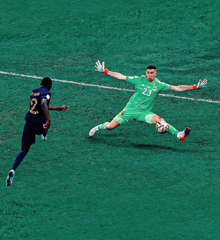 La épica atajada del Dibu Martínez en el final del partido ante Francia, en Qatar, que le dio a la selección argentina el tercer título mundial. @EmilianoMartínez.