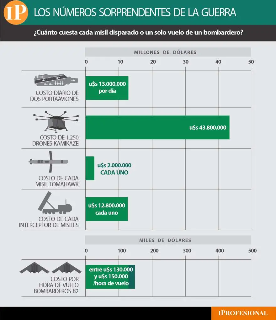 Los números de la guerra: cuánto cuesta cada misil disparado o un solo vuelo de un bombardero
