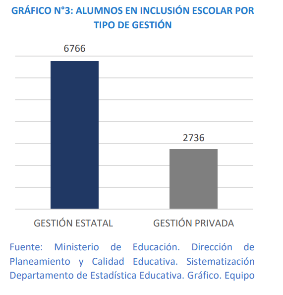 En cuanto a la gestión, el sector estatal concentra el 71% de la matrícula total de inclusión, sosteniendo la mayor parte del volumen del sistema. Sin embargo, la proporción relativa de escuelas que registran inclusión es mayor en el ámbito privado (54%) que en el estatal (45%). El Poder Ejecutivo busca abordar estas asimetrías mediante un proyecto que propone integrar a los Docentes de Apoyo a la Inclusión (DAI) a la planta permanente de las escuelas para asegurar estabilidad laboral bajo el Estatuto del Docente. Esta medida fue celebrada por la Agremiación de Trabajadores de Educadores Provinciales (ATEP), cuyo secretario general, Hugo Brito, afirmó que la permanencia de especialistas “enriquece la tarea docente y mejora el seguimiento de los estudiantes”.