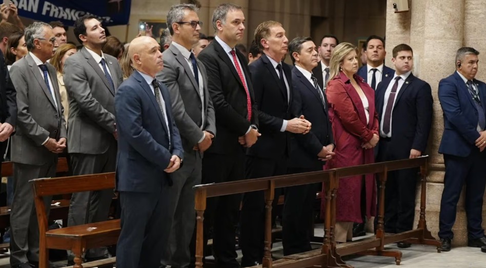 Detrás suyo, completaban la comitiva oficial Federico Sturzenegger (Desregulación); Mario Lugones (Salud); el secretario de Culto, Agustín Caulo, entre otros legisladores oficialistas. También formaron parte de la amplia convocatoria política gobernadores y legisladores de otros espacios.