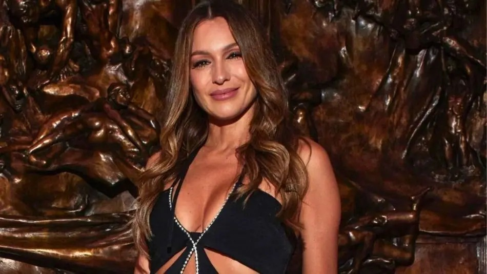 La modelo usó un vestido lencero de satén negro con breteles finos y delicado detalle de puntillas, con botas altas. Y completó su look con un blazer de lino al tono.