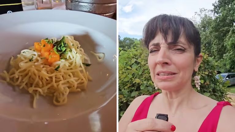 A la hora del menú, Paulina se encontró con un gravlax de salmón “que estaba re bueno”. Además del pancito, Paulina quedó alucinada por la manera de servir la sopa. “trajeron los fideitos y la sopa aparte, y cada uno la servía en su mesa, y obviamente yo serví la de mi mesa”, comentó.