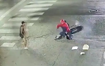 De acuerdo a las imágenes, tras hacer caer al conductor de la moto, los transeúntes se sumaron para impedir su huida y el delincuente fue detenido por agentes de la Patrulla de Protección Ciudadana.