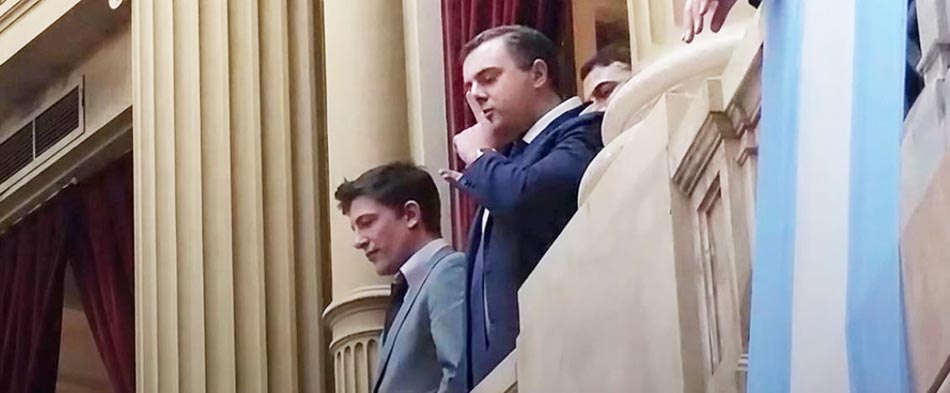 «El Gordo Dan dirige la Asamblea Legislativa», sentenció la diputada, que mostró lo que la transmisión no: al tuitero libertario en su palco en el Congreso.