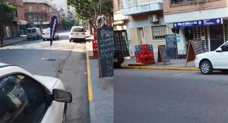 «En La Rioja al 400 pusieron un cartel de Rapipago sobre la calle y no se puede estacionar. Se adueñaron del espacio público y pintaron el cordón de amarillo para que nadie estacione ahí», indicaron vecinos de Barrio Sur a través del WhatsApp de CONTEXTO.