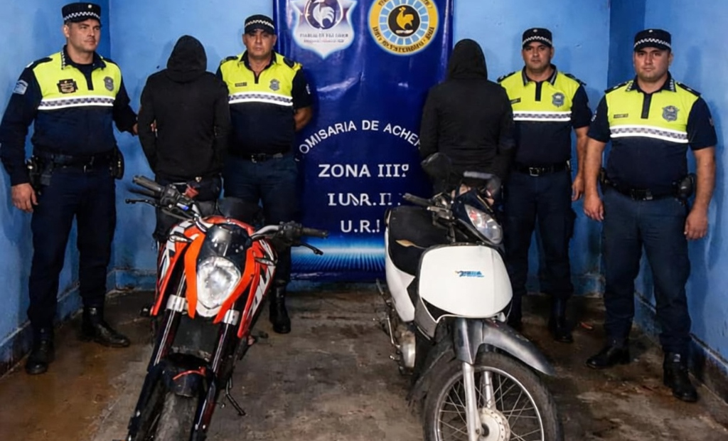 Dos jóvenes de 19 años fueron aprehendidos durante la madrugada de este martes en Acheral, tras una persecución policial que se inició luego de un robo agravado cometido en la localidad de Santa Lucía. Ambos quedaron a disposición de la Justicia bajo la acusación de haber sustraído una motocicleta mediante amenazas con un arma de fuego.