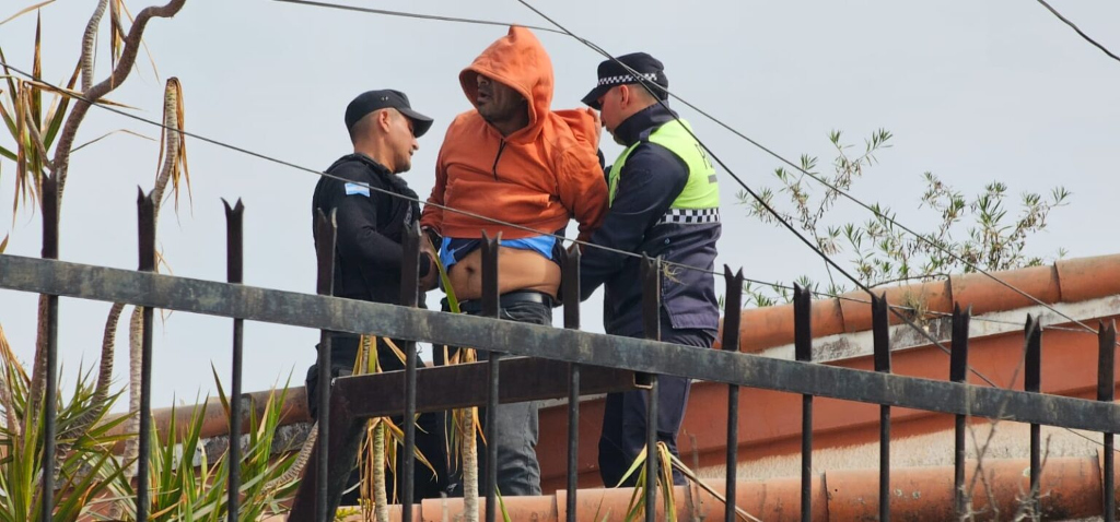Agudo ingresó a una vivienda particular en avenida Sarmiento intentó esconderse en el techo, pero fue finalmente aprehendido por personal policial y de la Guardia Urbana Municipal.