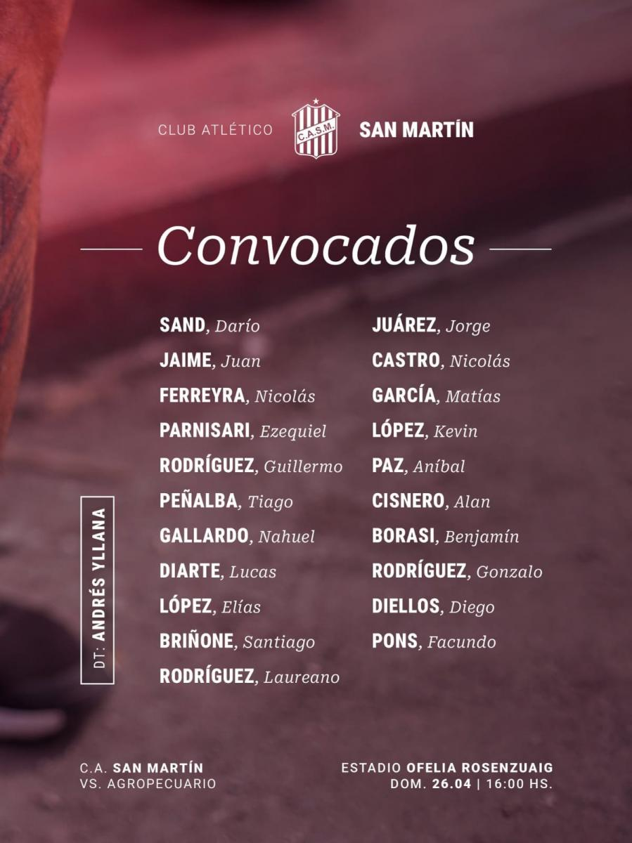 San Martín de Tucumán tiene una cita clave este domingo. El equipo de Andrés Yllana viaja a Carlos Casares para medirse ante Agropecuario desde las 16 horas en el Estadio Ofelia Rosenzuaig, por la fecha 11 de la Primera Nacional, con la mirada puesta en Gimnasia de Jujuy y la chance de seguir apretando la tabla.
