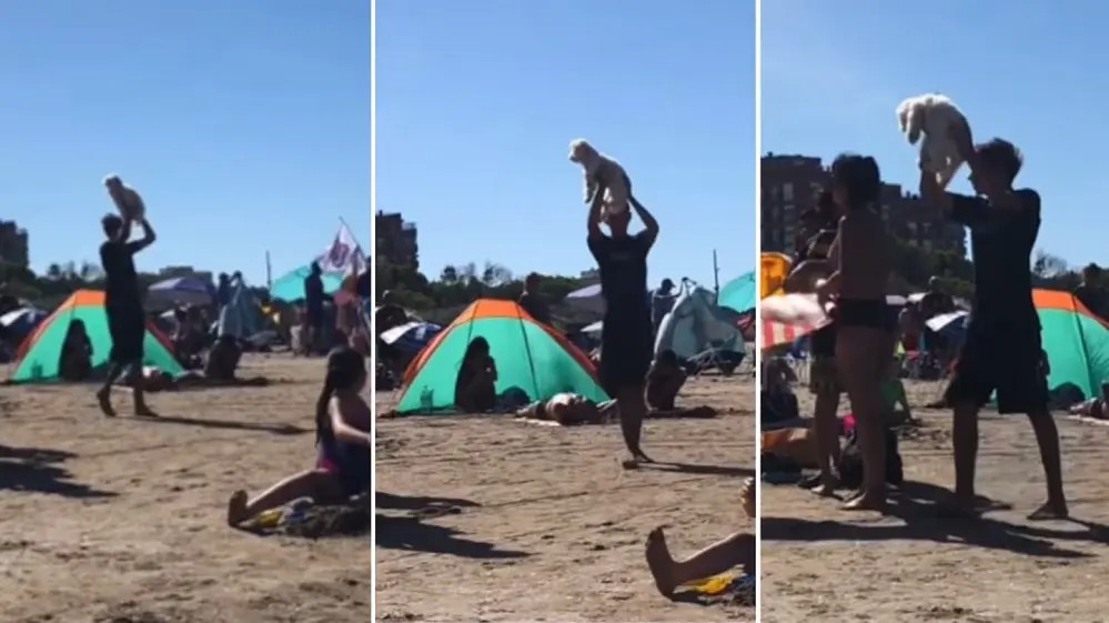 Un hombre levantó a un caniche perdido y se puso a caminar buscando a los dueños de la mascota. El comportamiento llamó la atención de decenas de bañistas que estaban en Playa San Clemente, en la Provincia de Buenos Aires.