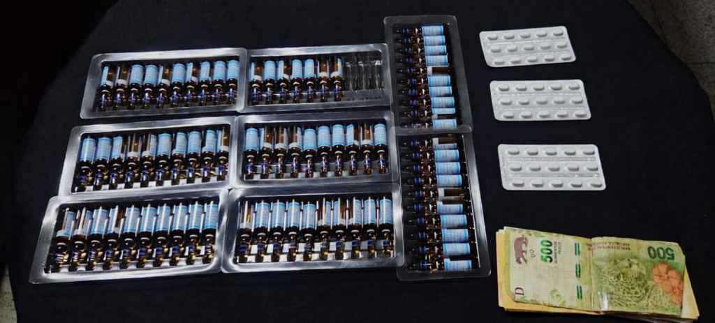Además de los fármacos, se secuestraron dos jeringas, tres teléfonos celulares y una suma de dinero en efectivo, elementos que quedaron incorporados a la investigación.