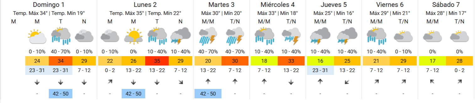 En cuanto al lunes, el SMN anticipa una jornada inestable con chances de precipitaciones para la tarde y la noche, con una máxima que alcanzará los 35°C.