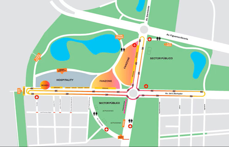 La cita programada para el domingo comenzará a las 8:30, cuando los asistentes podrán ingresar a plaza Seeber y plaza Sicilia, zonas que contarán con grandes escenarios y pantallas para seguir las vueltas del piloto desde distintos puntos. El evento ofrecerá seis horas de actividades: entrevistas en vivo, presentaciones de DJs, la actuación de la Orquesta Sinfónica de la Ciudad a partir de las 11 y propuestas gastronómicas, bajo un formato que reproduce la experiencia de un paddock profesional. Además, se preveé que habrá shows en vivo de artistas internacionales.