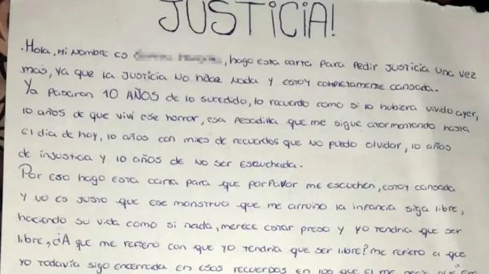 Tremenda carta de adolescente que denunció haber sido violada por su padre a los 5 años