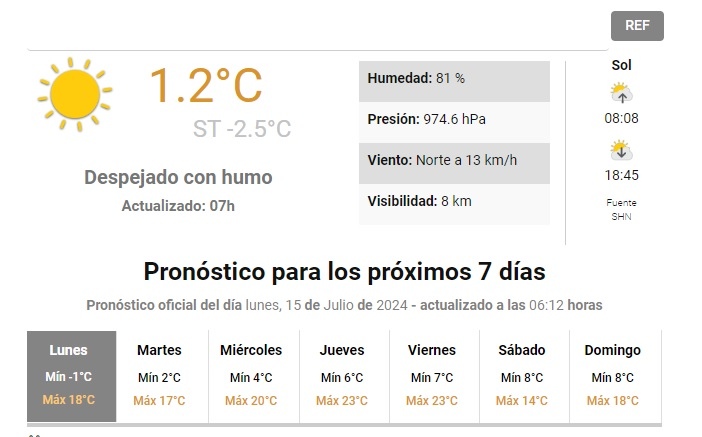 Para mañana martes, se espera una jornada mayormente despejada, con una mínima de 2ºC y una máxima que alcanzará los 17°C.