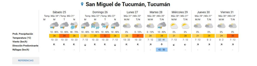 Para este sábado se espera una mínima de 21° y una máxima de 34°, en una jornada que amaneció soleado y algo nublado en la capital tucumana pero en la que se esperan tormentas aisladas por la mañana y por la tarde, y tormentas fuertes por la noche.