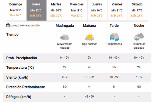 La semana en Tucumán arranca con un calor notable: el Servicio Meteorológico Nacional anticipa una máxima de 35 °C para el lunes, una jornada que podría culminar con tormentas aisladas, mientras que desde el martes rige una alerta amarilla que advierte sobre la posible presencia de tormentas fuertes que afectarán a gran parte del territorio provincial.