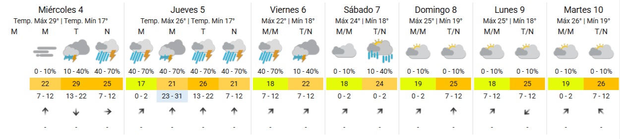 En cuanto al pronóstico, el SMN prevé un miércoles inestable, con posibles precipitaciones durante toda la jornada. La máxima para hoy rondaría los 29ºC.