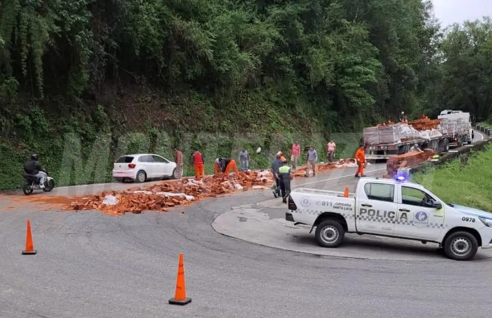 Según el informe policial, el camión transportaba ladrillos huecos, de los cuales 12 pallets cayeron sobre la ruta, generando un peligro para la circulación.