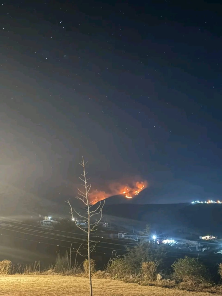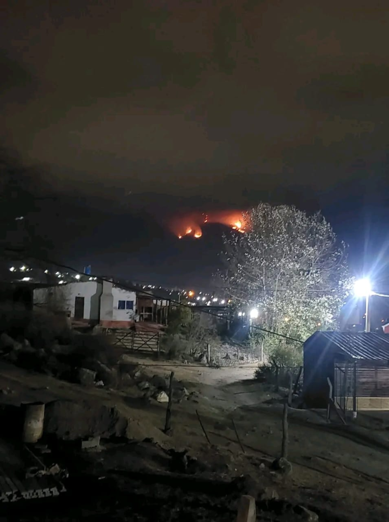 En las fotografías se puede observar una densa columna de humo elevándose desde el cerro, visible desde distintos puntos de la localidad.