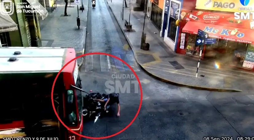 Un motociclista casi fue aplastado por un colectivo en el centro