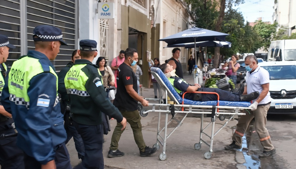 Un policía resultó herido este miércoles por la mañana durante una protesta de jubilados en la sede del PAMI, ubicada en Córdoba al 900. El efectivo debió ser retirado en camilla y con cuello ortopédico tras sufrir golpes en la cabeza y el abdomen.